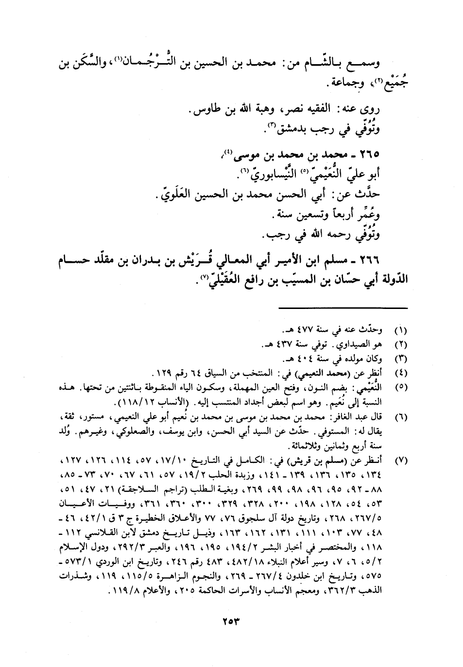 266- مسلم ابن الأمير أبي المعالي قُرَيْش بن بدران بن مقلّد حسام الدّولة أبي حسّان بن المسيّب بن رافع العقيليّ [7] .