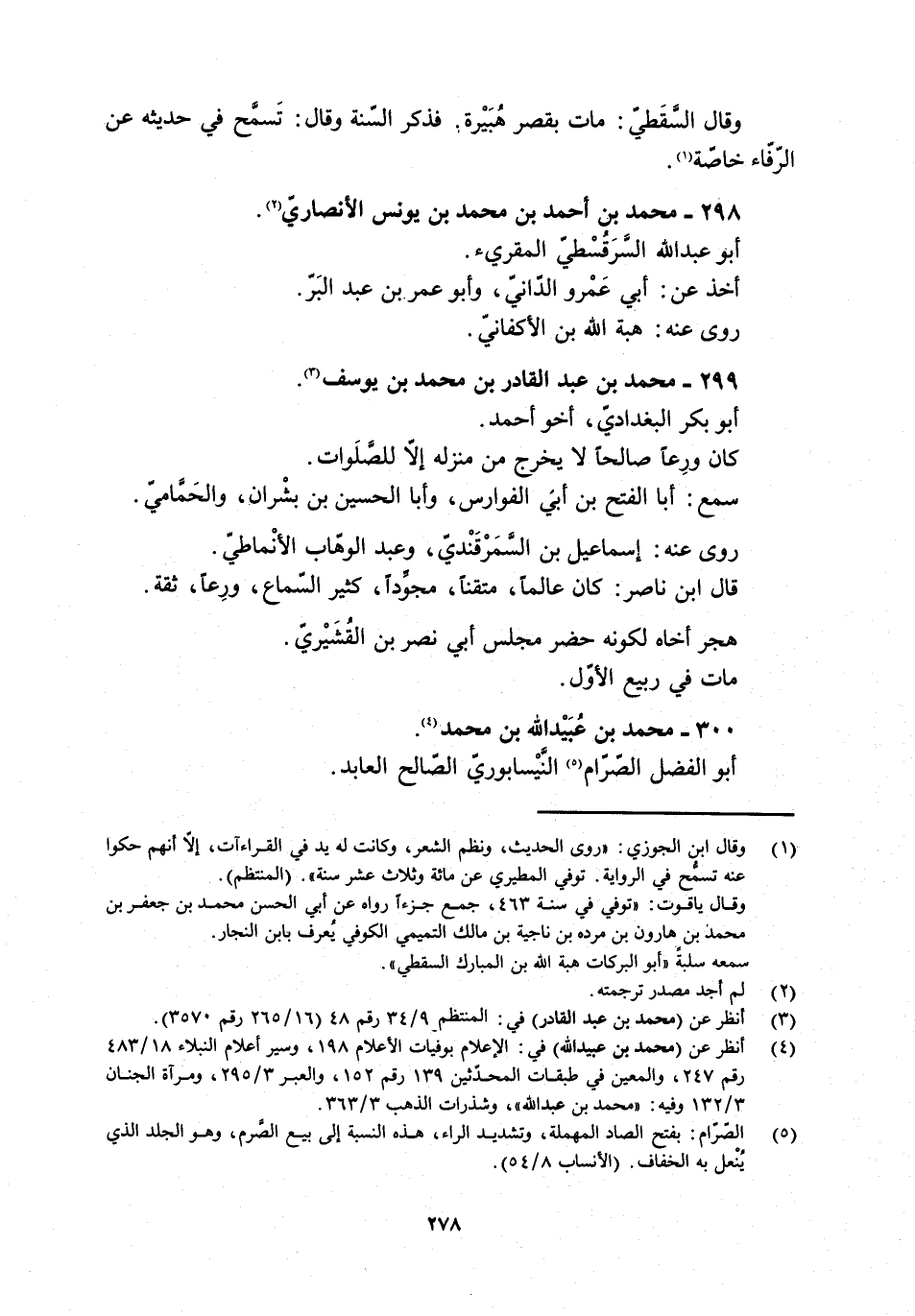 [5] الصّرام: بفتح الصاد المهملة، وتشديد الراء، هذه النسبة إلى بيع الصّرم، وهو الجلد الّذي ينعل به الخفاف. (الأنساب 8/ 54) .