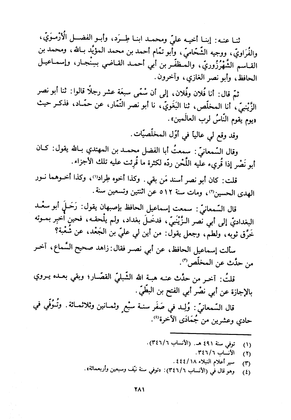 [4] وهو قال في (الأنساب 6/ 346) : «توفي سنة نيف وسبعين وأربعمائة» .