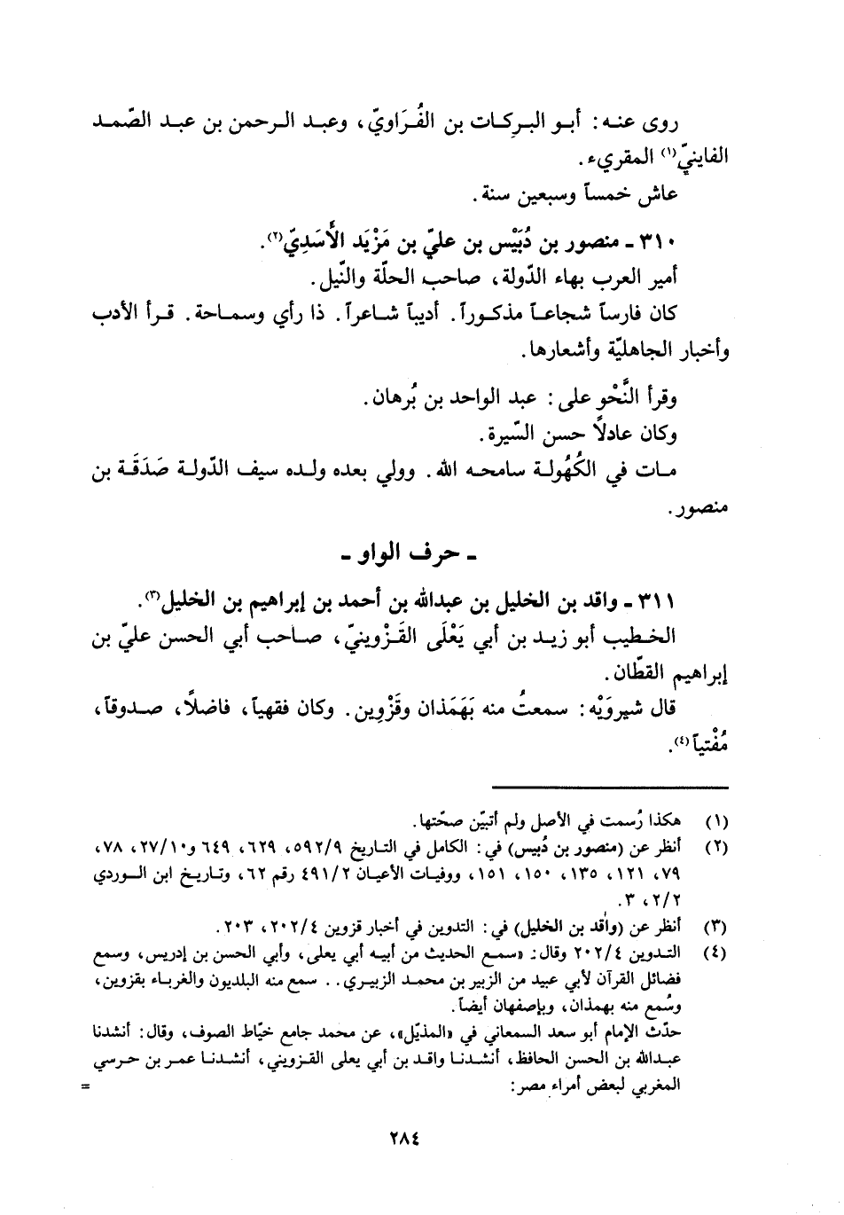 [3] انظر عن (واقد بن الخليل) في: التدوين في أخبار قزوين 4/ 202، 203.
