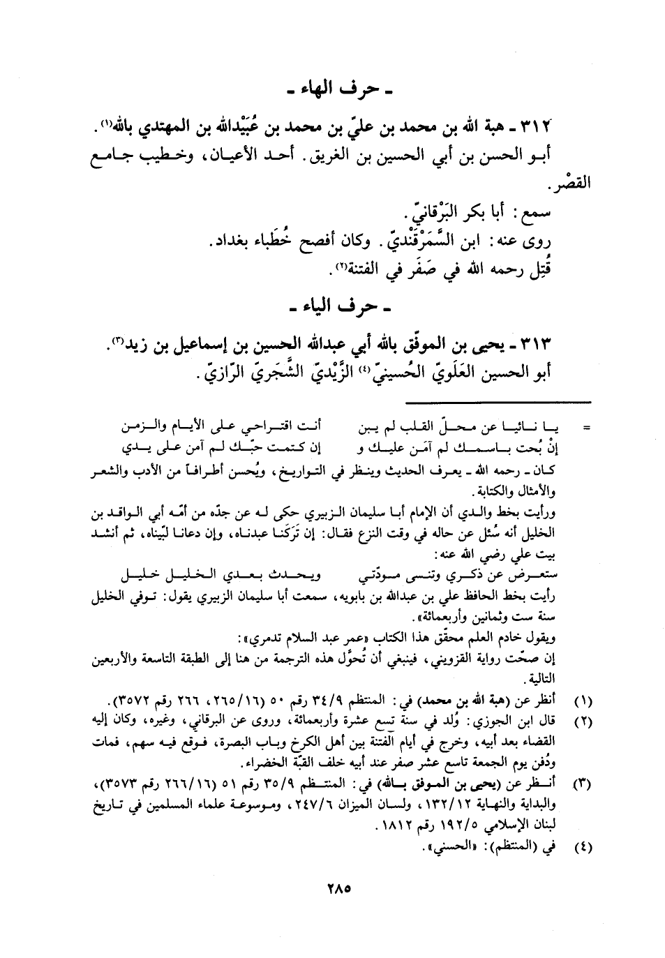 [1] انظر عن (هبة الله بن محمد) في: المنتظم 9/ 34 رقم 50 (16/ 265، 266 رقم 3572) .