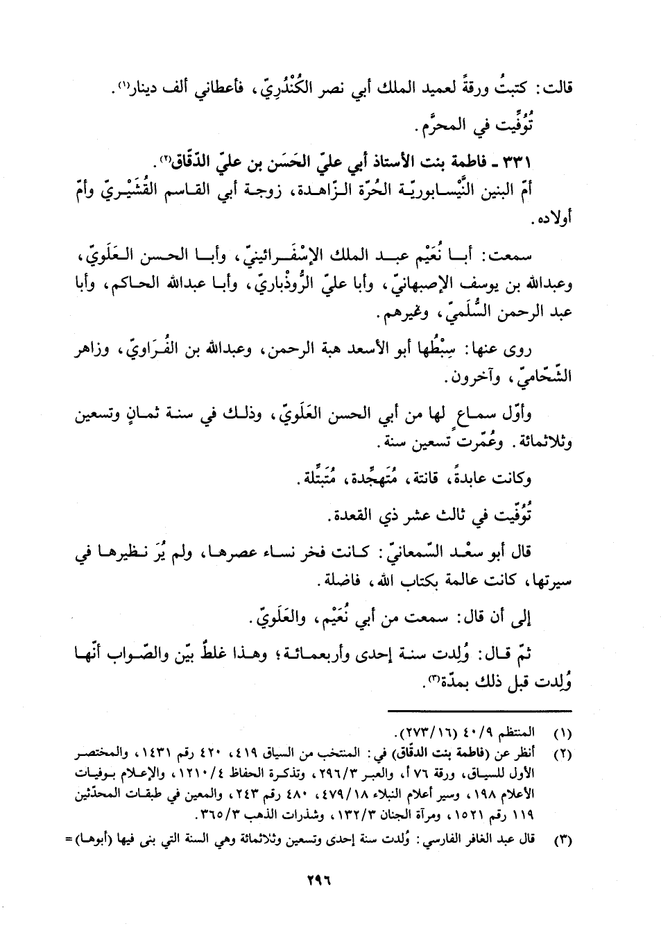 331- فاطمة بنت الأستاذ أبي عليّ الحَسَن بن عليّ الدّقّاق [2] .
