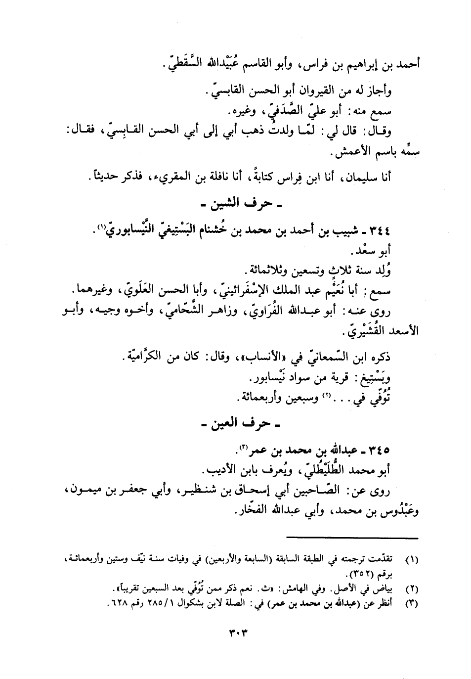[3] انظر عَنْ (عَبْدِ اللَّهِ بْنِ مُحَمَّدِ بْنِ عُمَرَ) في: الصلة لابن بشكوال 1/ 285 رقم 628.