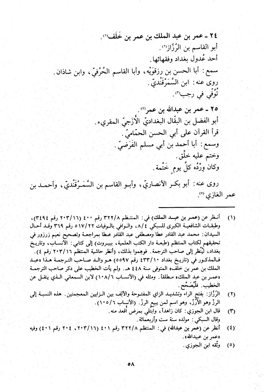 [4] انظر عن (عمر بن عبد الله) في: المنتظم 8/ 322 رقم 401 (16/ 203 204 رقم 401) وفيه «عمر بن عبيد الله» .
