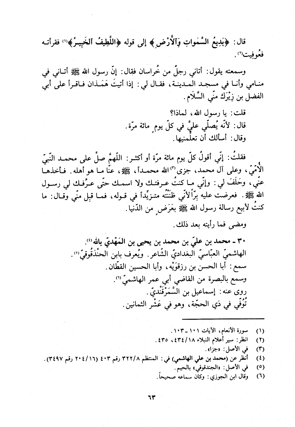 [4] انظر عن (محمد بن علي الهاشمي) في: المنتظم 8/ 322 رقم 403 (16/ 204 رقم 3497) .
