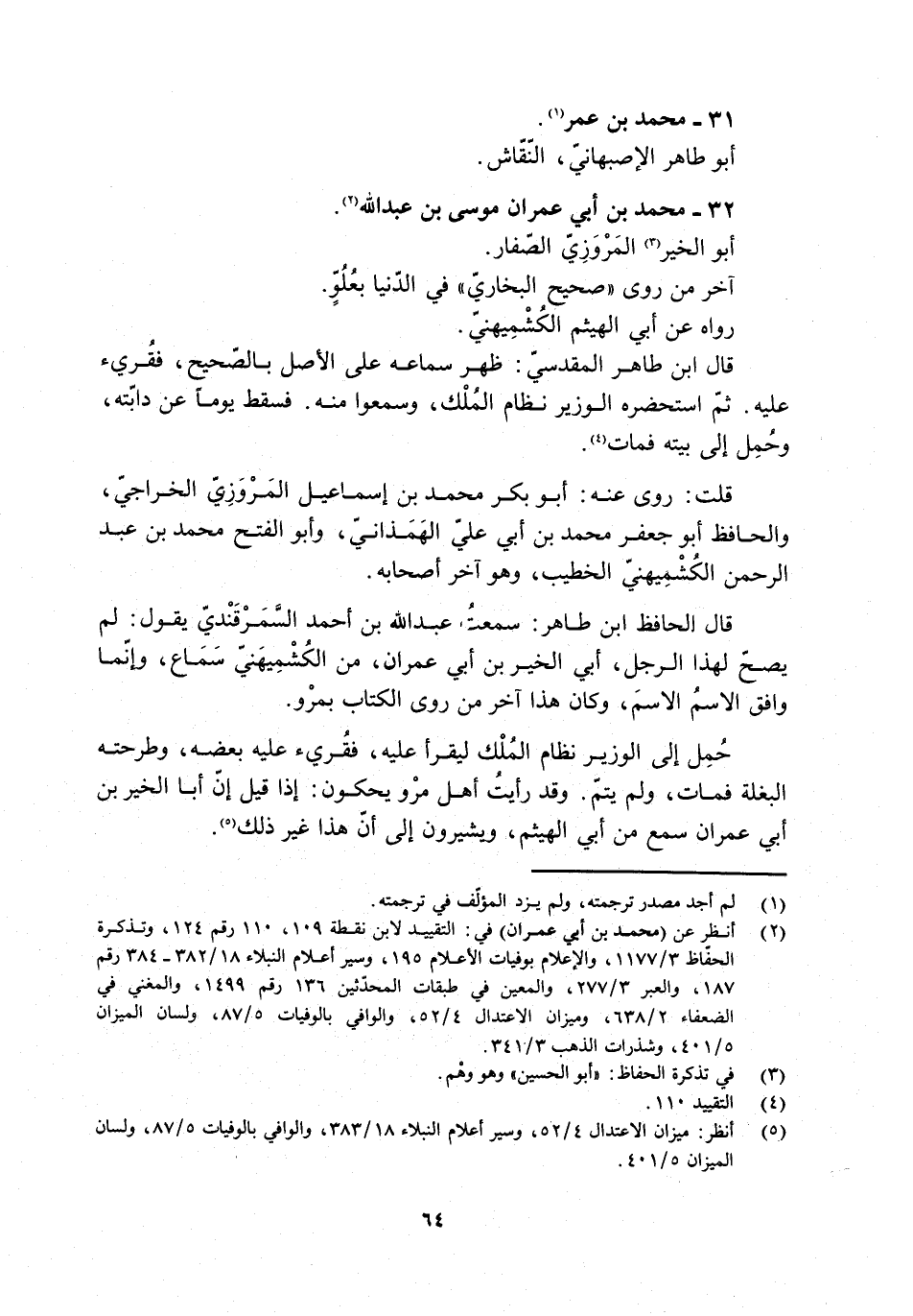 [5] انظر: ميزان الاعتدال 4/ 52، وسير أعلام النبلاء 18/ 383، والوافي بالوفيات 5/ 87، ولسان الميزان 5/ 401.