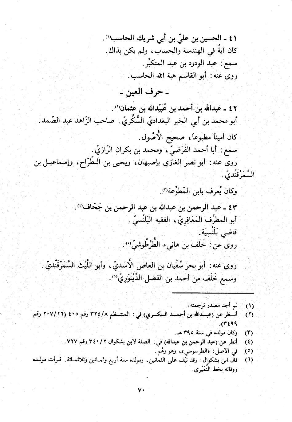 [2] انظر عن (عبد الله بن أحمد السكري) في: المنتظم 8/ 324 رقم 405 (16/ 207 رقم 3499) .