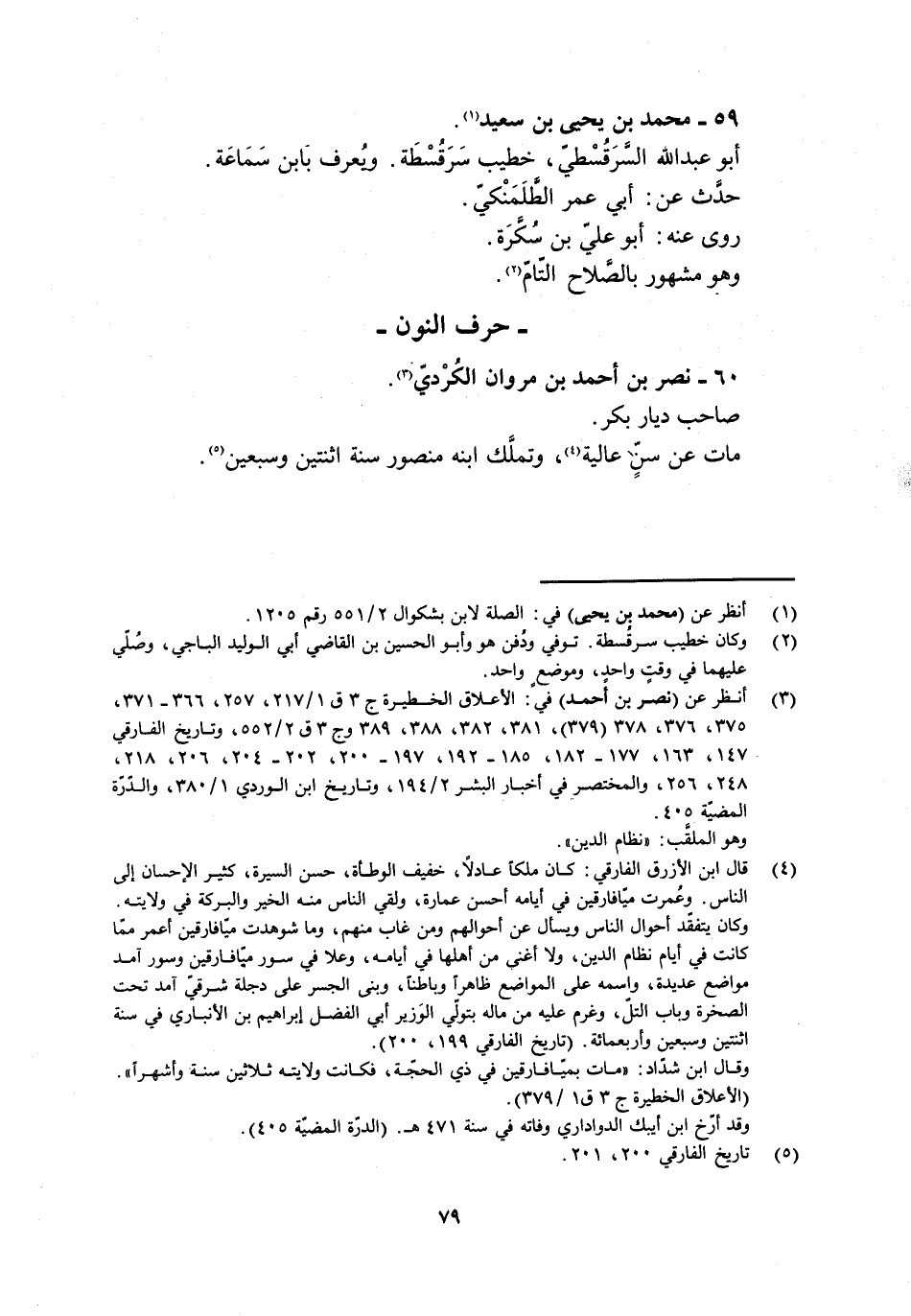[3] انظر عن (نصر بن أحمد) في: الأعلاق الخطيرة ج 3 ق 1/ 217، 257، 366- 371، 375، 376، 378 (379) ، 381، 382، 388، 389 وج 3 ق 2/ 552، وتاريخ الفارقيّ 147، 163، 177- 182، 185- 192، 197- 200، 202- 204، 206، 218، 248، 256، والمختصر في أخبار البشر 2/ 194، وتاريخ ابن الوردي 1/ 380، والدّرّة المضية 405.