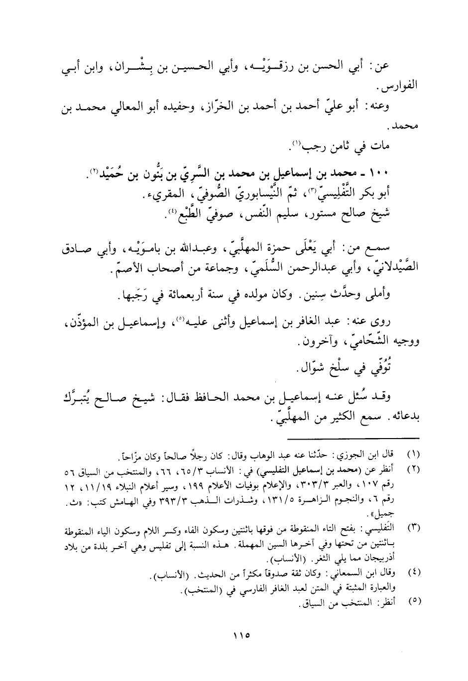 [2] انظر عن (محمد بن إسماعيل التفليسي) في: الأنساب 3/ 65، 66، والمنتخب من السياق 56 رقم 107، والعبر 3/ 303، والإعلام بوفيات الأعلام 199، وسير أعلام النبلاء 19/ 11، 12 رقم 6، والنجوم الزاهرة 5/ 131، وشذرات الذهب 3/ 393 وفي الهامش كتب: «ث.