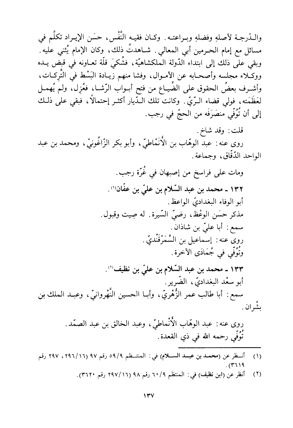 [1] انظر عن (محمد بن عبد السلام) في: المنتظم 9/ 59 رقم 97 (16/ 296، 297 رقم 3619) .