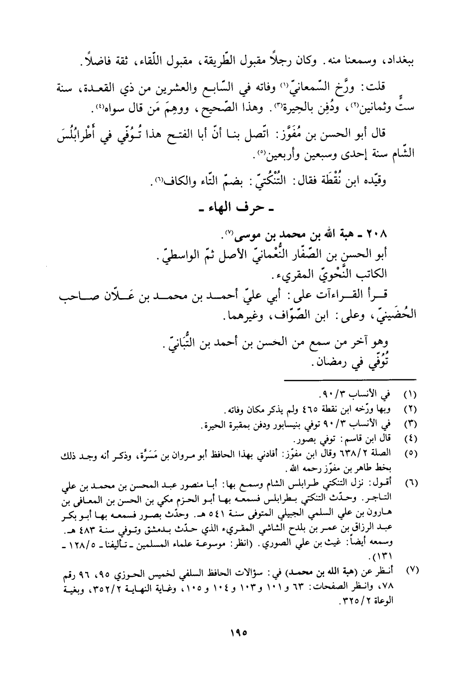 [7] انظر عن (هبة الله بن محمد) في: سؤالات الحافظ السلفي لخميس الحوزي 95، 96 رقم 78، وانظر الصفحات: 63 و 101 و 103 و 104 و 105، وغاية النهاية 2/ 352، وبغية الوعاة 2/ 325.