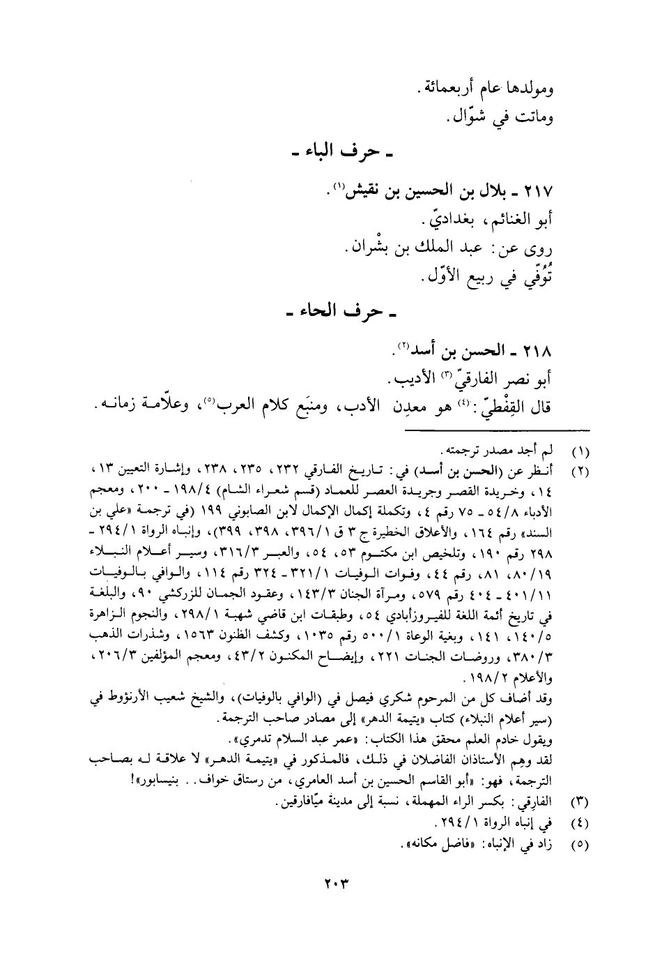 [2] انظر عن (الحسن بن أسد) في: تاريخ الفارقيّ 232، 235، 238، وإشارة التعيين 13، 14، وخريدة القصر وجريدة العصر للعماد (قسم شعراء الشام) 4/ 198- 200، ومعجم الأدباء 8/ 54- 75 رقم 4، وتكملة إكمال الإكمال لابن الصابوني 199 (في ترجمة «علي بن السند» رقم 164، والأعلاق الخطيرة ج 3 ق 1/ 396، 398، 399) ، وإنباه الرواة 1/ 294- 298 رقم 190، وتلخيص ابن مكتوم 53، 54، والعبر 3/ 316، وسير أعلام النبلاء 19/ 80، 81، رقم 44، وفوات الوفيات 1/ 321- 324 رقم 114، والوافي بالوفيات 11/ 401- 404 رقم 579، ومرآة الجنان 3/ 143، وعقود الجمان للزركشي 90، والبلغة في تاريخ أئمة اللغة للفيروزآبادي 54، وطبقات ابن قاضي شهبة 1/ 298، والنجوم الزاهرة 5/ 140، 141، وبغية الوعاة 1/ 500 رقم 1035، وكشف الظنون 1563، وشذرات الذهب 3/ 380، وروضات الجنات 221، وإيضاح المكنون 2/ 43، ومعجم المؤلفين 3/ 206، والأعلام 2/ 198.