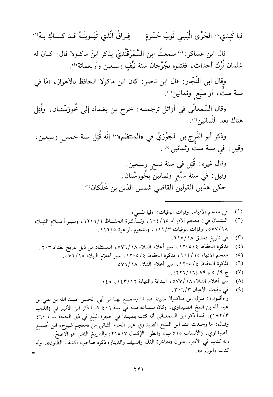 [5] معجم الأدباء 15/ 104، تذكرة الحفاظ 4/ 1205، سير أعلام النبلاء 18/ 576.