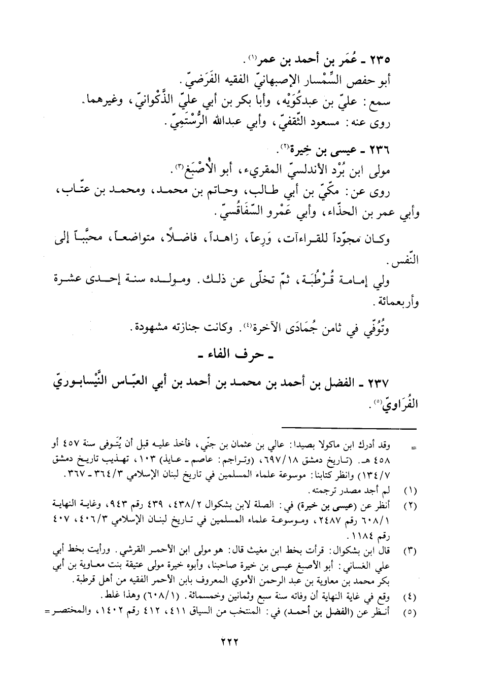 [5] انظر عن (الفضل بن أحمد) في: المنتخب من السياق 411، 412 رقم 1402، والمختصر