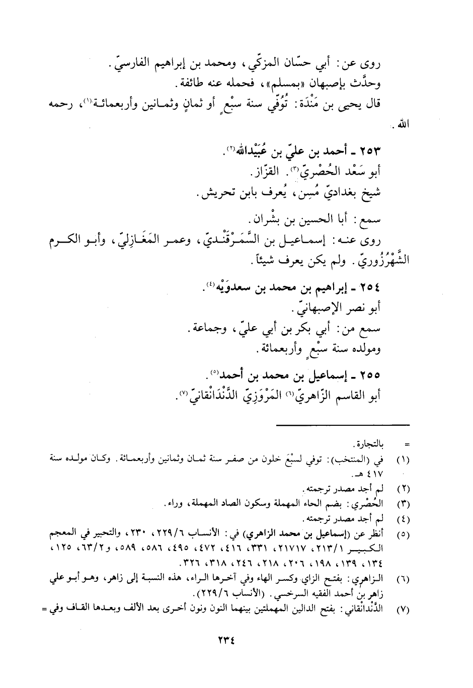 [5] انظر عن (إسماعيل بن محمد الزاهريّ) في: الأنساب 6/ 229، 230، والتحبير في المعجم الكبير 1/ 213، 21717، 331، 416، 472، 495، 586، 589، و 2/ 63، 125، 134، 139، 198، 206، 218، 246، 318، 326.