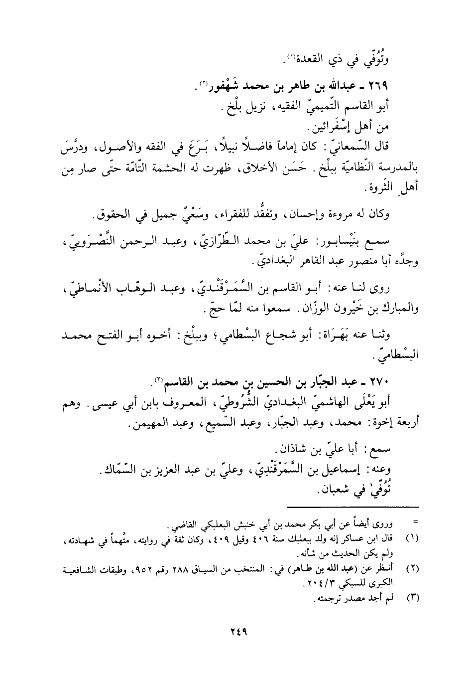 [2] انظر عن (عبد الله بن طاهر) في: المنتخب من السياق 288 رقم 952، وطبقات الشافعية الكبرى للسبكي 3/ 204.