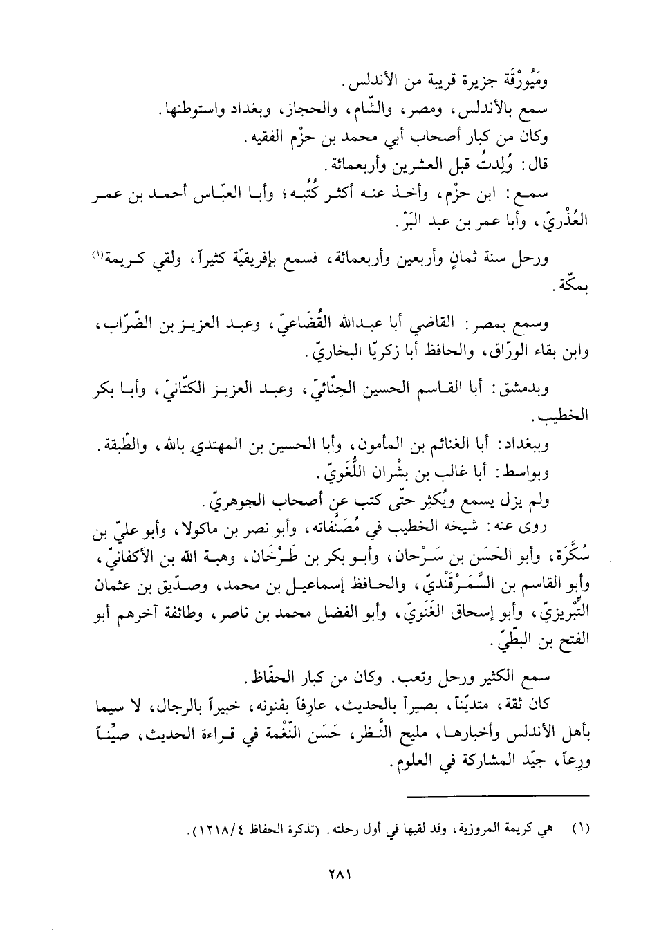 [1] هي كريمة المروزية، وقد لقيها في أول رحلته. (تذكرة الحفاظ 4/ 1218) .