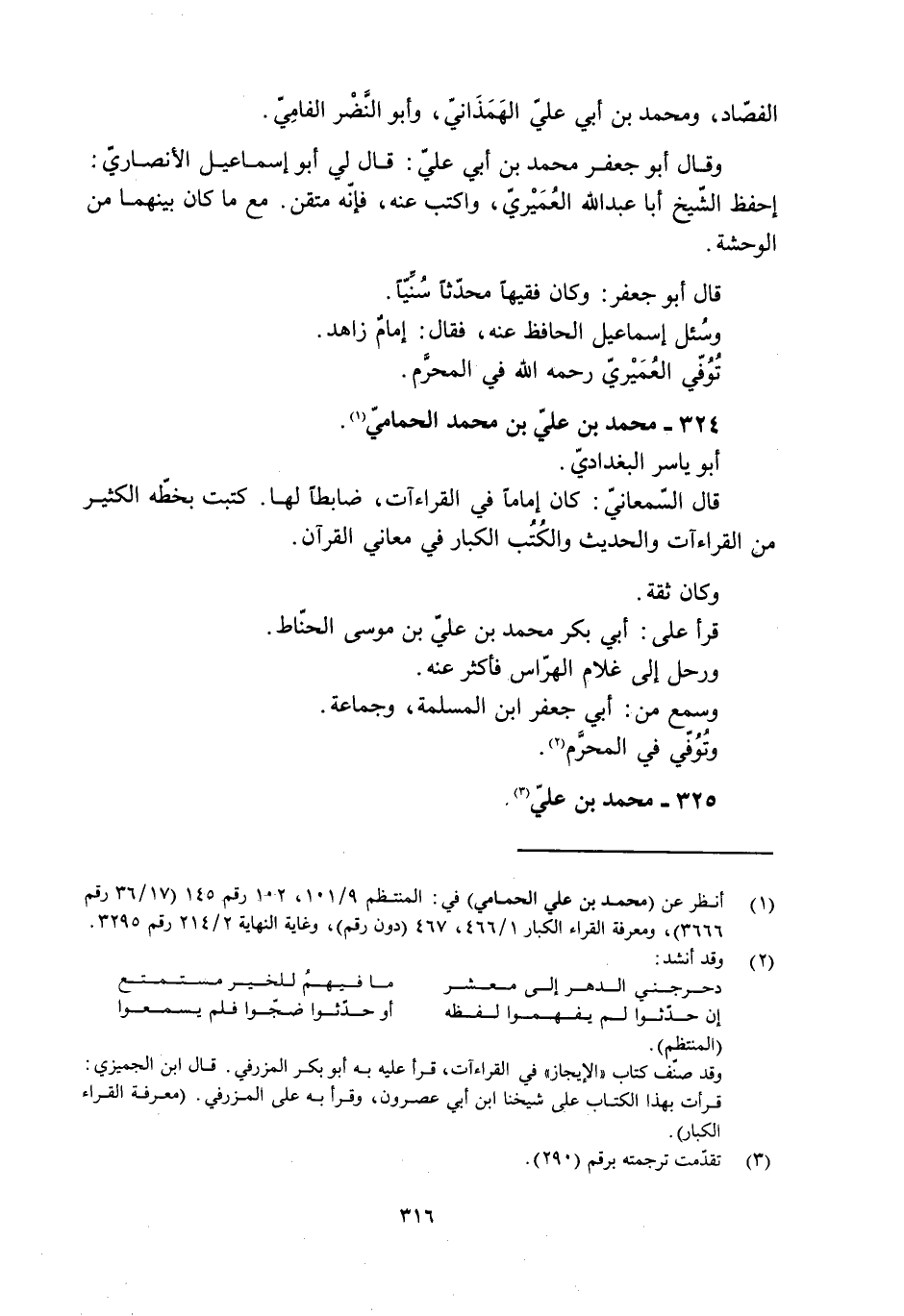 [1] انظر عن (محمد بن علي الحمامي) في: المنتظم 9/ 101، 102 رقم 145 (17/ 36 رقم 3666) ، ومعرفة القراء الكبار 1/ 466، 467 (دون رقم) ، وغاية النهاية 2/ 214 رقم 3295.
