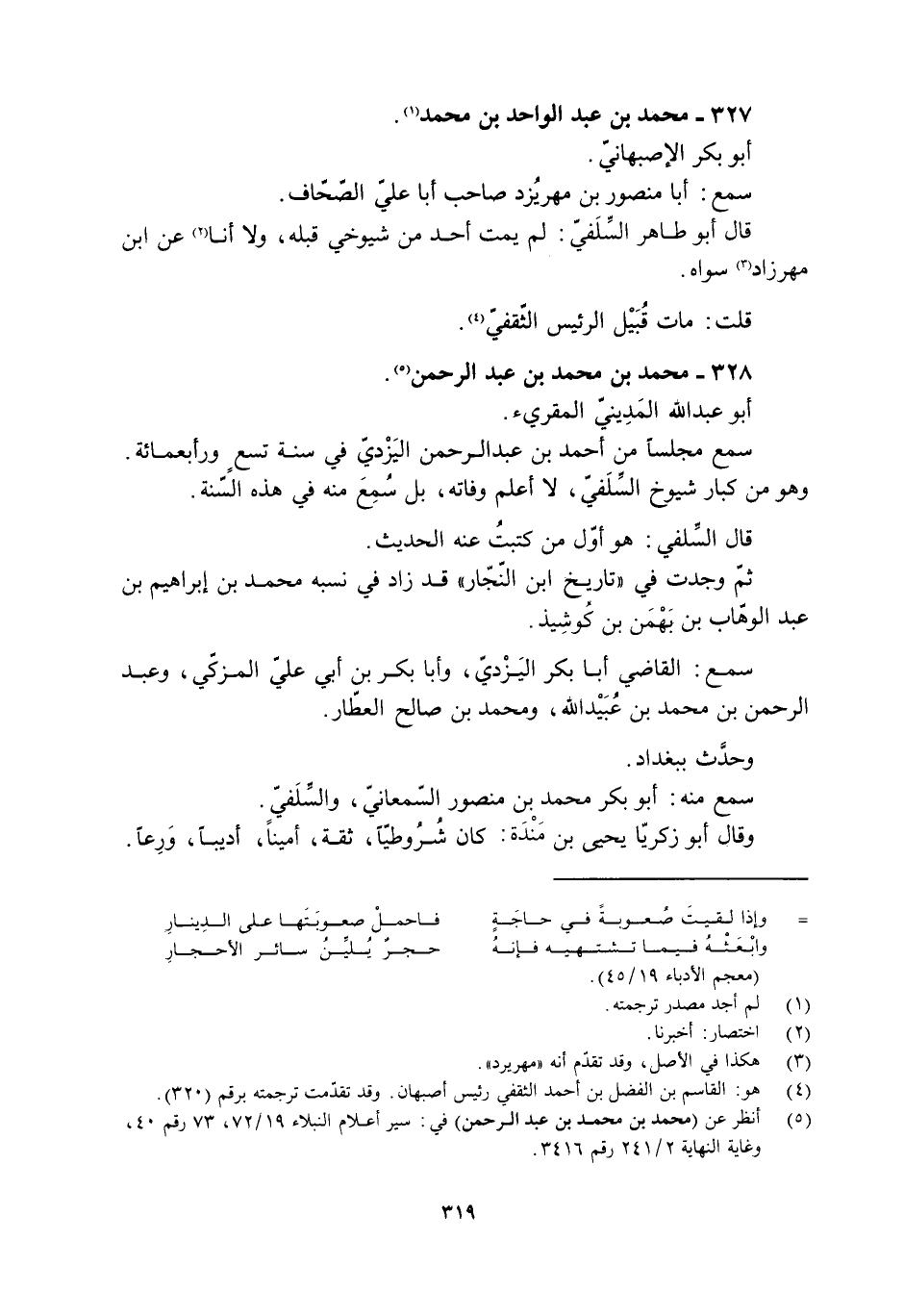 [5] انظر عن (محمد بن محمد بن عبد الرحمن) في: سير أعلام النبلاء 19/ 72، 73 رقم 40، وغاية النهاية 2/ 241 رقم 3416.