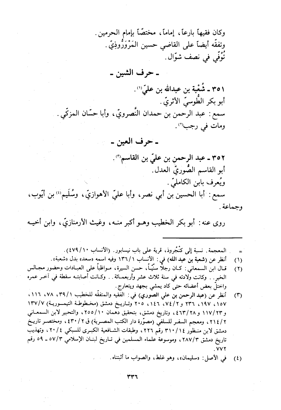 [3] انظر عن (عبد الرحمن بن علي الصوري) في: الفقيه والمتفقّه للخطيب 1/ 39، 78، 116، 157، 197، 236 و 2/ 74، 146، 205 وتاريخ دمشق (مخطوطة التيمورية) 7/ 137 و 23/ 117 و 28/ 463، وتاريخ دمشق، بتحقيق دهمان 10/ 255، والتحبير لابن السمعاني 2/ 214، ومعجم السفر للسلفي (مصوّرة دار الكتب المصرية) ق 2/ 430، ومختصر تاريخ دمشق لابن منظور 14/ 310 رقم 226، وطبقات الشافعية الكبرى للسبكي 4/ 20، وتهذيب تاريخ دمشق 3/ 287، وموسوعة علماء المسلمين في تاريخ لبنان الإسلامي 3/ 57- 59 رقم 772.