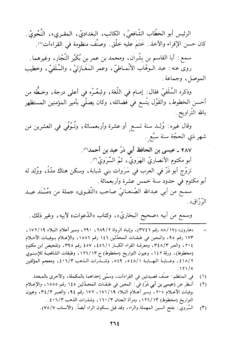 [3] السّروي: بفتح السين المهملة والراء، وقد قيل بسكون الراء أيضا. (الأنساب 7/ 75) .