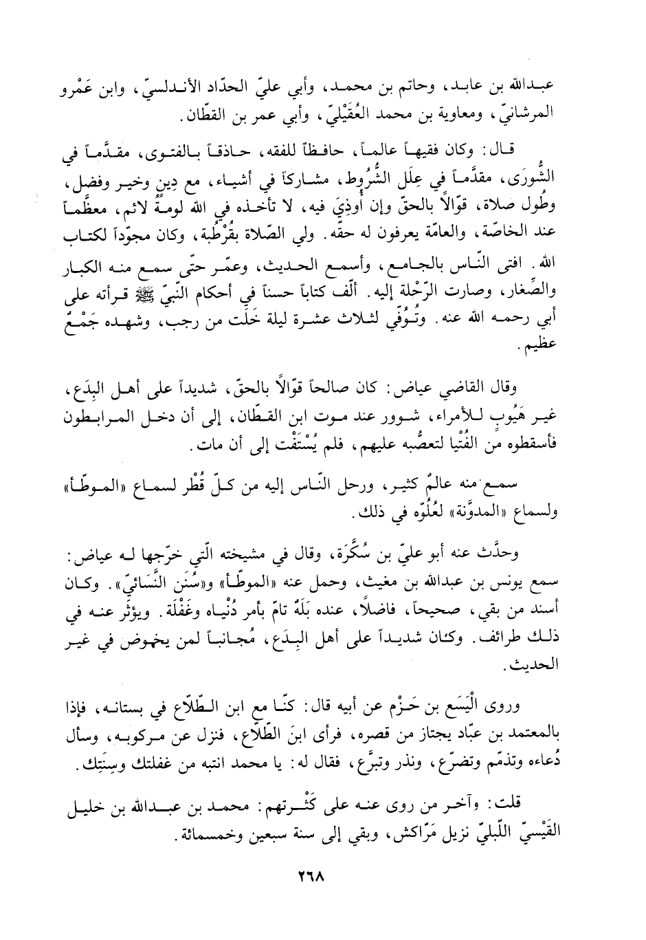 قلت: وآخر من روى عَنْهُ عَلَى كثرتهم: مُحَمَّد بْن عَبْد اللَّه بْن خليل القَيْسيّ اللّبليّ نزيل مرّاكش، وبقي إلى سنة سبعين وخمسمائة.