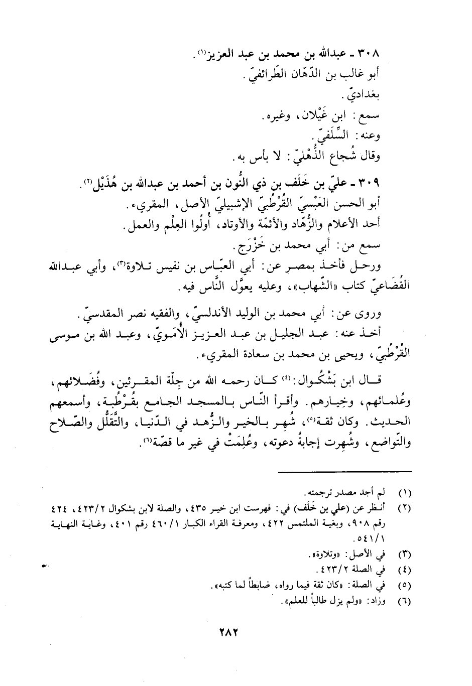 [2] انظر عن (علي بن خلف) في: فهرست ابن خير 435، والصلة لابن بشكوال 2/ 423، 424 رقم 908، وبغية الملتمس 422، ومعرفة القراء الكبار 1/ 460 رقم 401، وغاية النهاية 1/ 541.