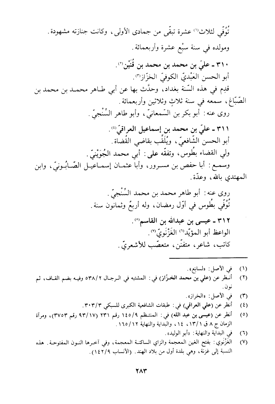 [2] انظر عن (علي بن محمد الخزّاز) في: المشتبه في الرجال 2/ 538 وفيه بضم القاف، ثم نون.