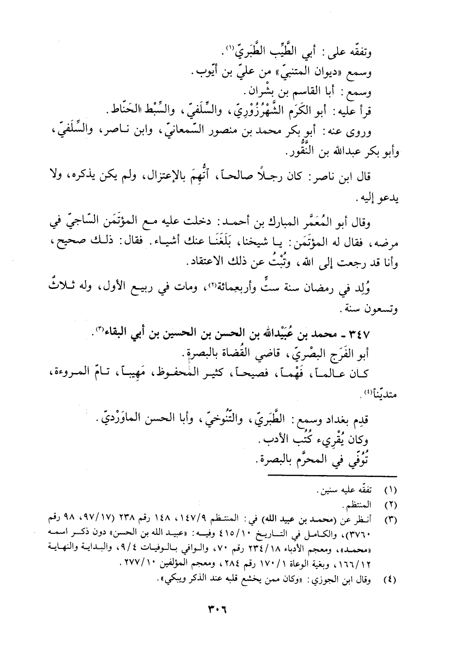 347- مُحَمَّد بْن عُبَيْد اللَّه بْن الحَسَن بْن الحُسين بْن أَبِي البقاء [3] .