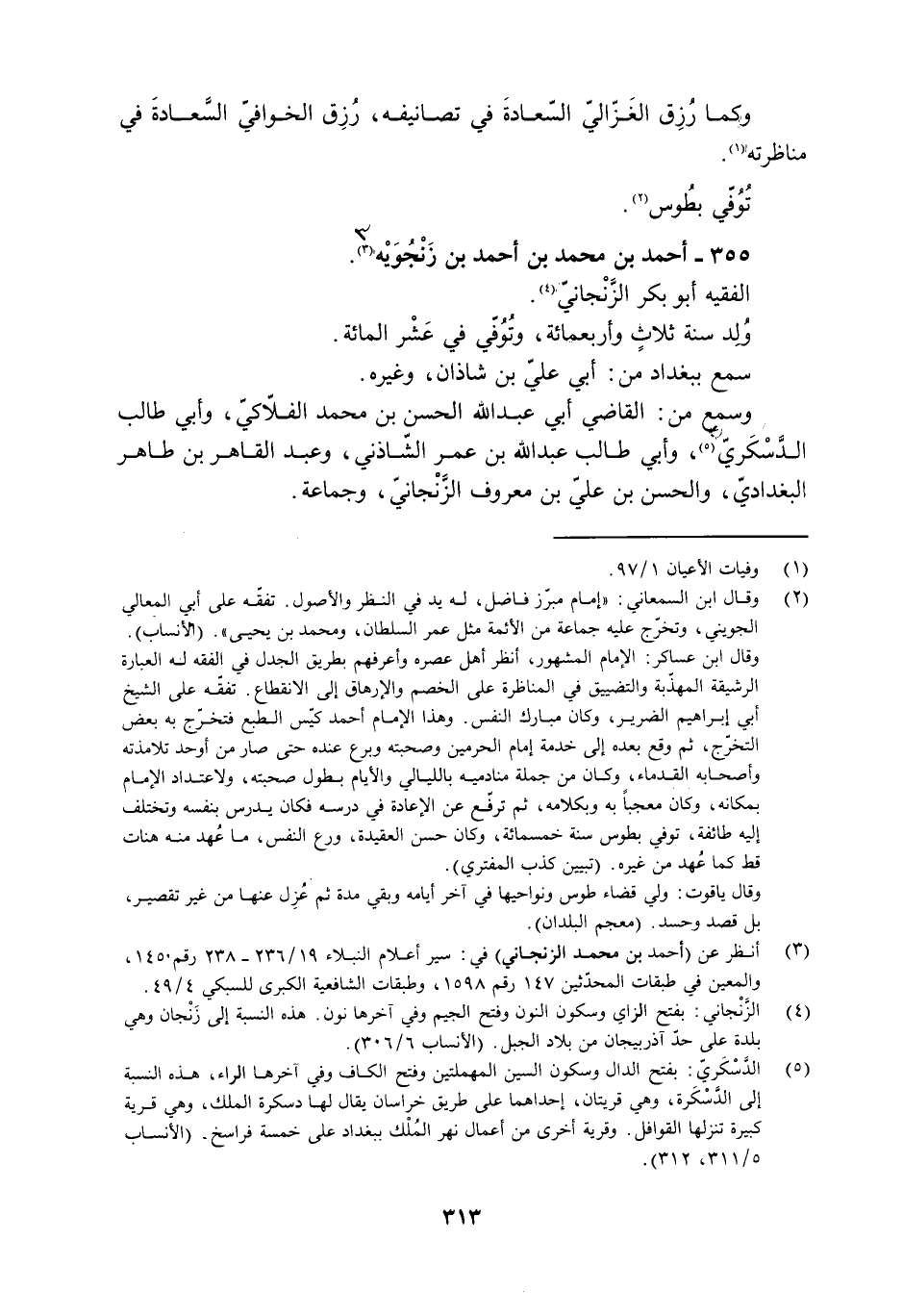 [3] انظر عن (أحمد بن محمد الزنجاني) في: سير أعلام النبلاء 19/ 236- 238 رقم 1450، والمعين في طبقات المحدّثين 147 رقم 1598، وطبقات الشافعية الكبرى للسبكي 4/ 49.
