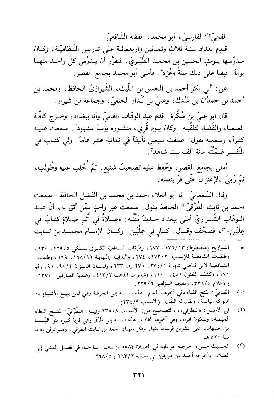 الفاميّ [1] الفارسيّ، أبو مُحَمَّد، الفقيه الشّافعيّ.