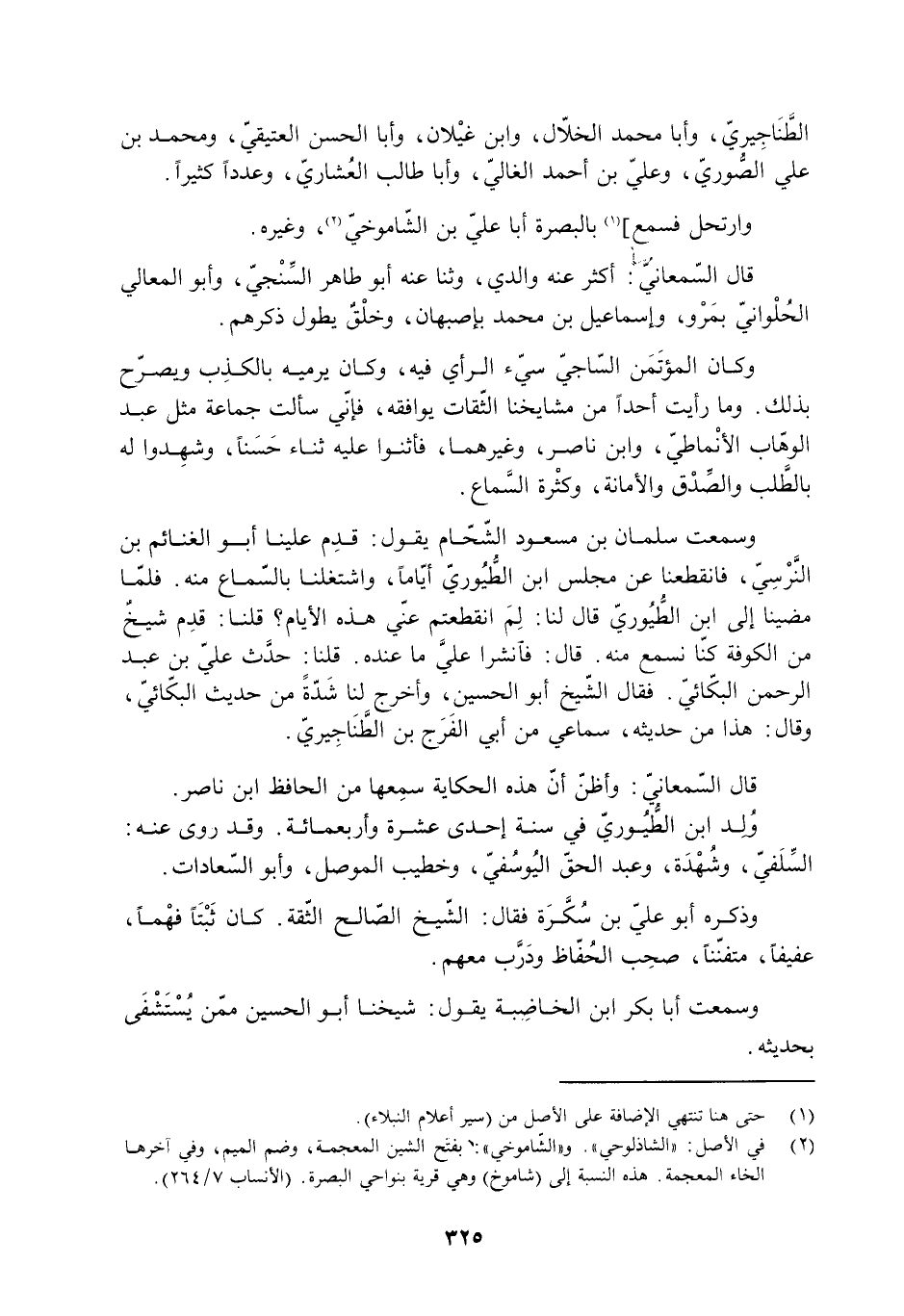 [2] في الأصل: «الشاذلوحي» . و «الشّاموخي» : بفتح الشين المعجمة، وضم الميم، وفي آخرها الخاء المعجمة. هذه النسبة إلى (شاموخ) وهي قرية بنواحي البصرة. (الأنساب 7/ 264) .