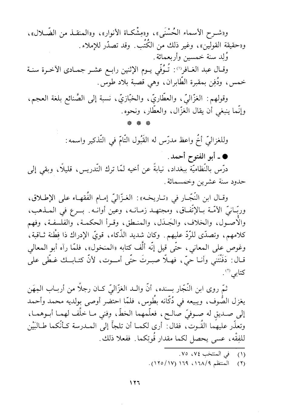 وللغزاليّ أخٌ واعظ مدرّس لَهُ القَبُول التّامّ في التّذكير واسمه: