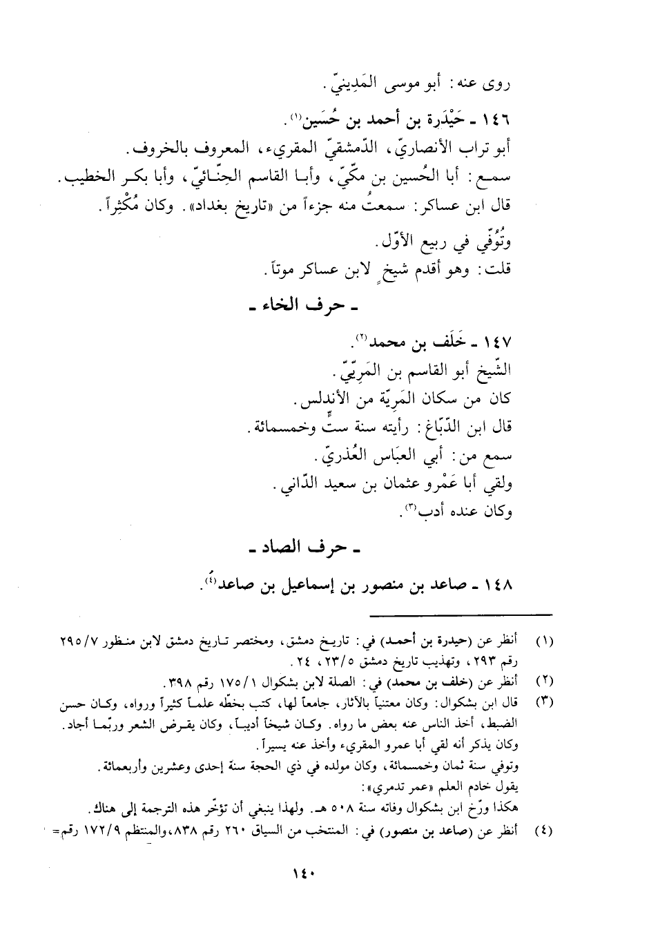 [4] انظر عن (صاعد بن منصور) في: المنتخب من السياق 260 رقم 838، والمنتظم 9/ 172 رقم