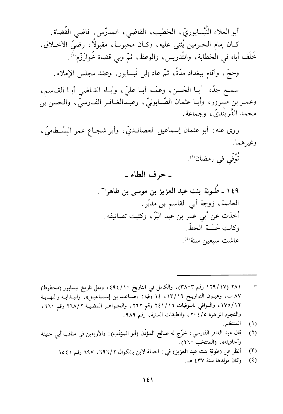 149- طُونة بِنْت عَبْد العزيز بْن موسى بْن طاهر [3] .