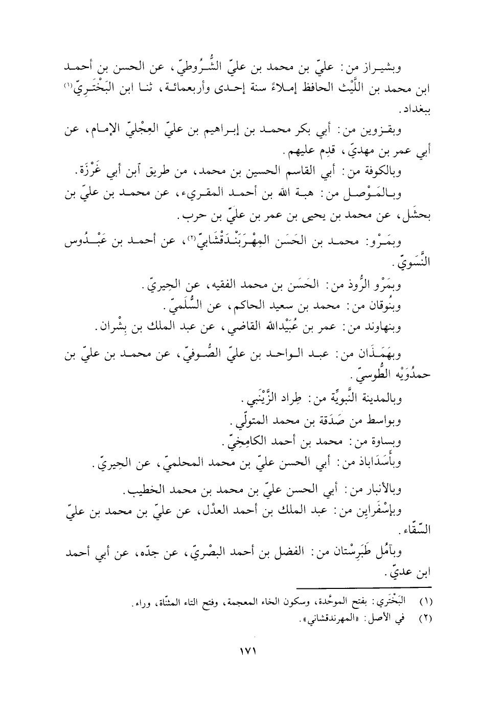 وبهَمَذَان مِن: عَبْد الواحد بْن علي الصُّوفيّ، عَنْ محمد بْن عليّ بْن حَمْدَوَيْه الطّوسيّ.