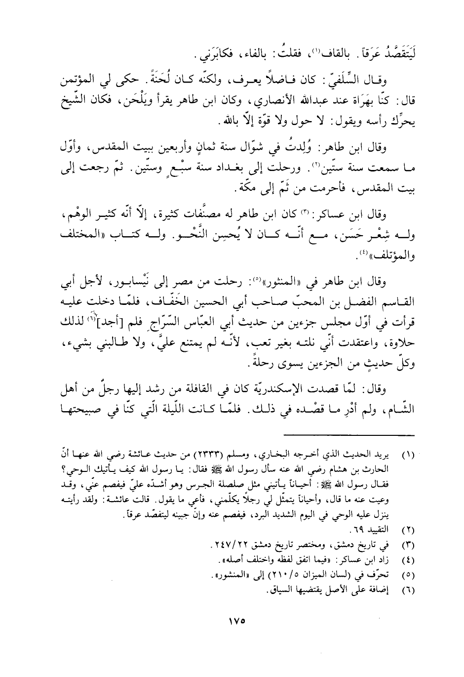 وَقَالَ ابن طاهر: وُلِدتُ في شوّال سنة ثمانٍ وأربعين ببيت المقدس، وأوّل ما سَمِعْتُ سنة ستّين [2] . ورحلت إلى بغداد سنة سبْعٍ وستّين. ثمّ رجعت إلى بيت المقدس، فأحرمت مِن ثَمّ إلى مكّة.