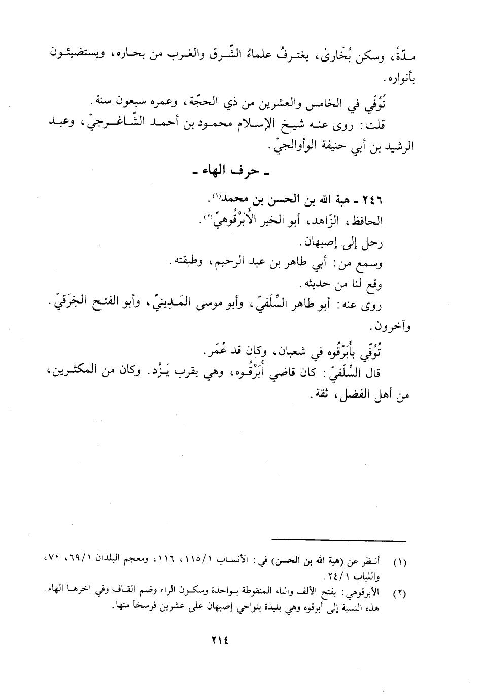 [1] انظر عن (هبة الله بن الحسن) في: الأنساب 1/ 115، 116، ومعجم البلدان 1/ 69، 70، واللباب 1/ 24.