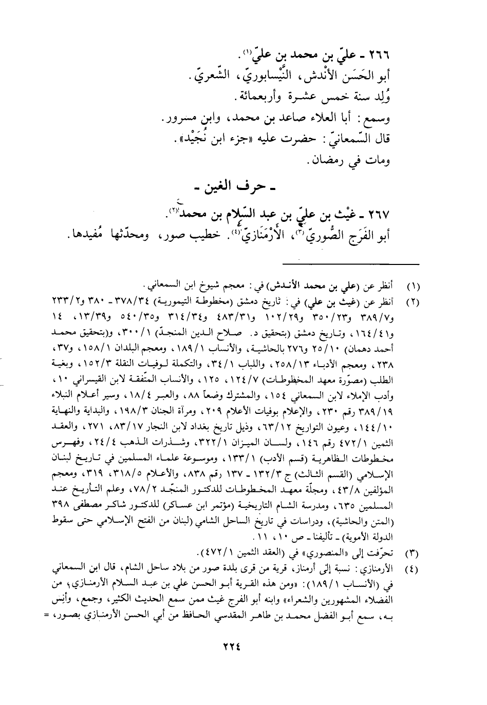 [2] انظر عن (غيث بن علي) في: تاريخ دمشق (مخطوطة التيمورية) 34/ 378- 380 و 2/ 233 و 7/ 389 و 23/ 350 و 29/ 102 و 31/ 483 و 34/ 314 و 35/ 540 و 39/ 13، 14 و 41/ 164، وتاريخ دمشق (بتحقيق د. صلاح الدين المنجّد) 1/ 300، و (بتحقيق محمد أحمد دهمان) 10/ 25 و 276 بالحاشية، والأنساب 1/ 189، ومعجم البلدان 1/ 158، و 37، 238، ومعجم الأدباء 13/ 258، واللباب 1/ 34، والتكملة لوفيات النقلة 3/ 152، وبغية الطلب (مصوّرة معهد المخطوطات) 7/ 124، 125، والأنساب المتّفقة لابن القيسراني 10، وأدب الإملاء لابن السمعاني 154، والمشترك وضعا 88، والعبر 4/ 18، وسير أعلام النبلاء 19/ 389 رقم 230، والإعلام بوفيات الأعلام 209، ومرآة الجنان 3/ 198، والبداية والنهاية 10/ 144، وعيون التواريخ 12/ 63، وذيل تاريخ بغداد لابن النجار 17/ 83، 271، والعقد الثمين 1/ 472 رقم 146، ولسان الميزان 1/ 322، وشذرات الذهب 4/ 24، وفهرس مخطوطات الظاهرية (قسم الأدب) 1/ 133، وموسوعة علماء المسلمين في تاريخ لبنان الإسلامي (القسم الثالث) ج 3/ 132- 137 رقم 838، والأعلام 5/ 318، 319، ومعجم المؤلفين 8/ 43، ومجلّة معهد المخطوطات للدكتور المنجّد 2/ 78، وعلم التأريخ عند المسلمين 635، ومدرسة الشام التاريخية (مؤتمر ابن عساكر) للدكتور شاكر مصطفى 398 (المتن والحاشية) ، ودراسات في تاريخ الساحل الشامي (لبنان من الفتح الإسلامي حتى سقوط الدولة الأموية) - تأليفنا- ص 10، 11.