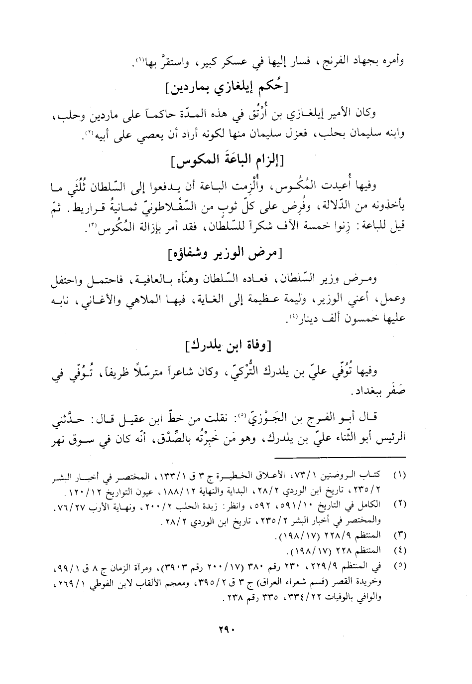 [5] في المنتظم 9/ 229، 230 رقم 380 (17/ 200 رقم 3903) ، ومرآة الزمان ج 8 ق 1/ 99، وخريدة القصر (قسم شعراء العراق) ج 3 ق 2/ 395، ومعجم الألقاب لابن الفوطي 1/ 269، والوافي بالوفيات 22/ 334، 335 رقم 238.