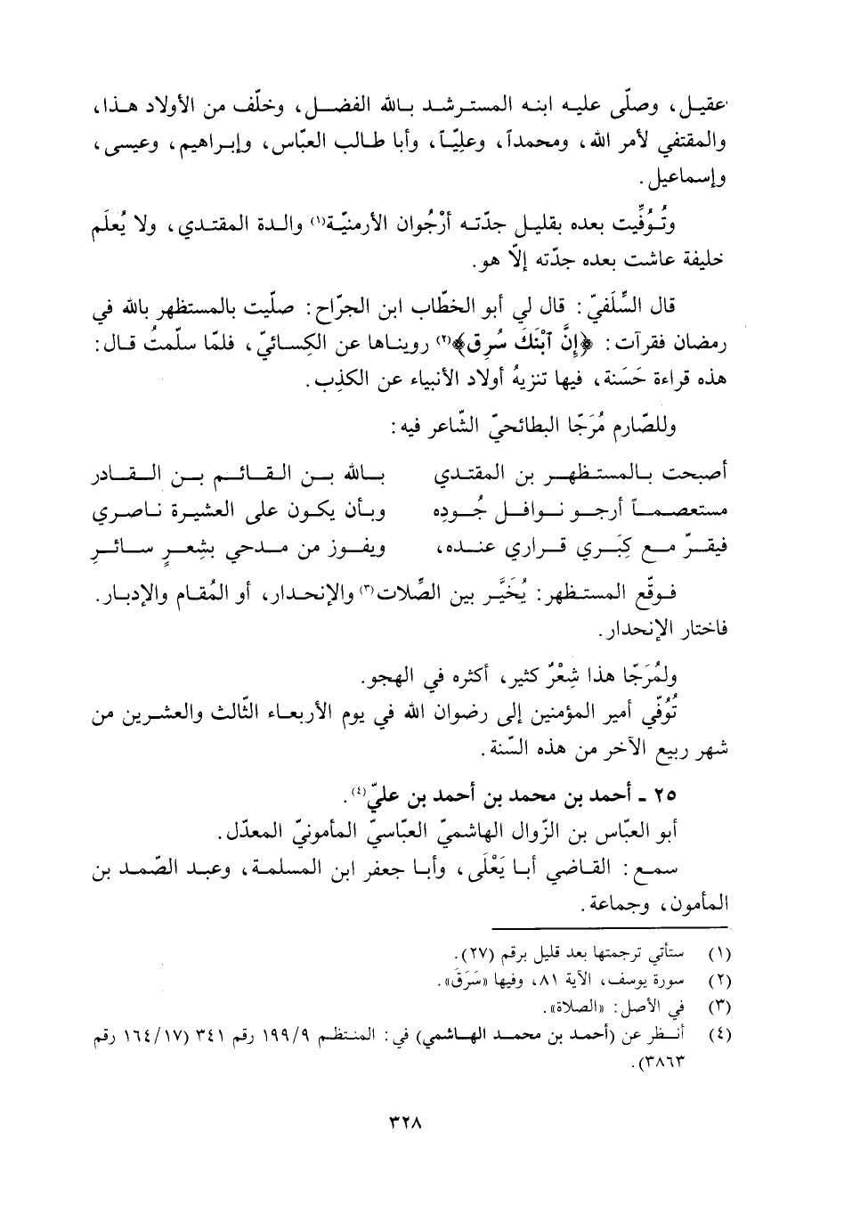 [4] انظر عن (أحمد بن محمد الهاشمي) في: المنتظم 9/ 199 رقم 341 (17/ 164 رقم 3863) .