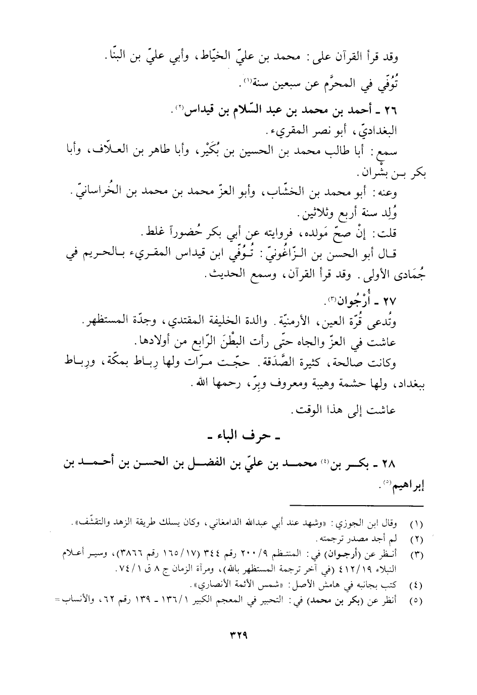 [3] انظر عن (أرجوان) في: المنتظم 9/ 200 رقم 344 (17/ 165 رقم 3866) ، وسير أعلام النبلاء 19/ 412 (في آخر ترجمة المستظهر باللَّه) ، ومرآة الزمان ج 8 ق 1/ 74.