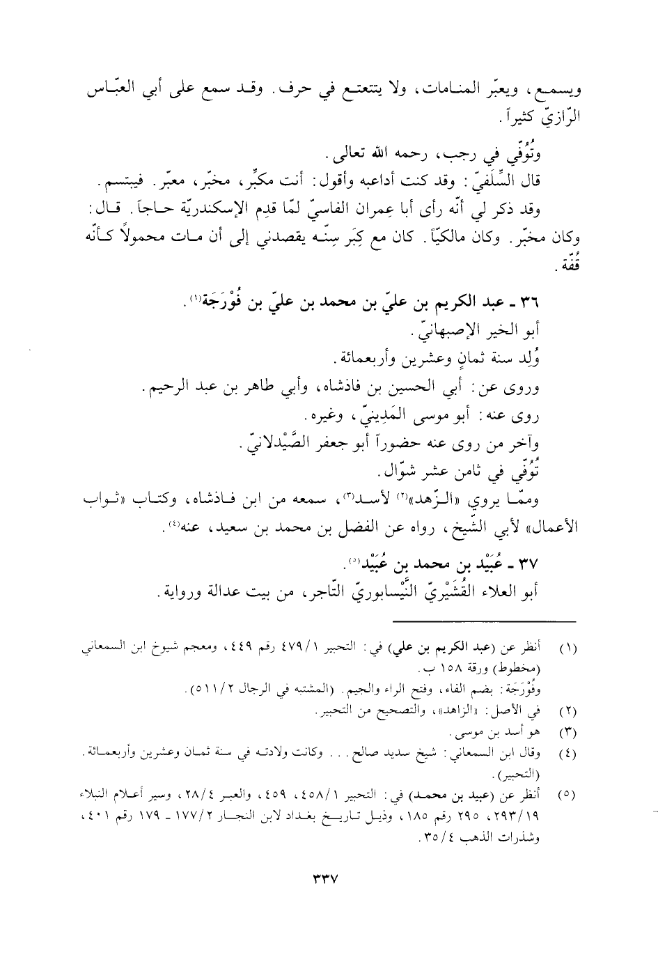 [1] انظر عن (عبد الكريم بن علي) في: التحبير 1/ 479 رقم 449، ومعجم شيوخ ابن السمعاني (مخطوط) ورقة 158 ب.