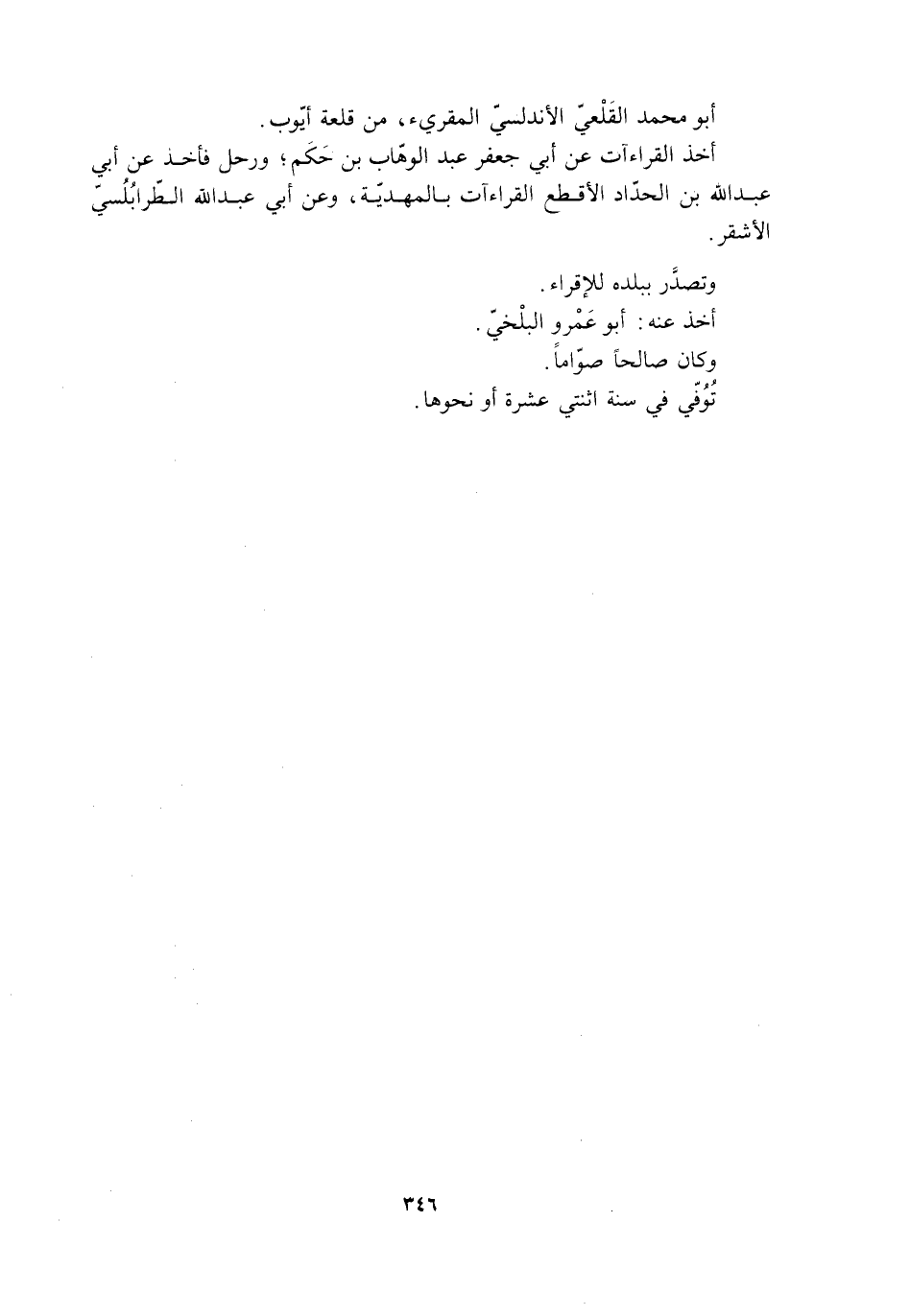 أبو محمد القَلْعيّ الأندلسيّ المقرئ، مِن قلعة أيّوب.