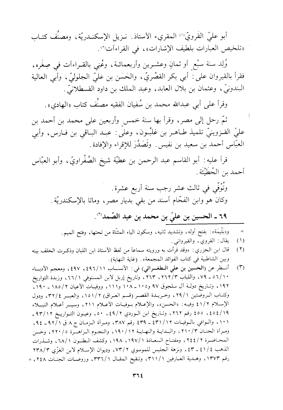 أبو عليّ القَرويّ [1] المقرئ الأستاذ. نزيل الإسكندريّة، ومصنَّف كتاب «تلخيص العبارات بلطيف الإشارات» ، في القراءات [2] .