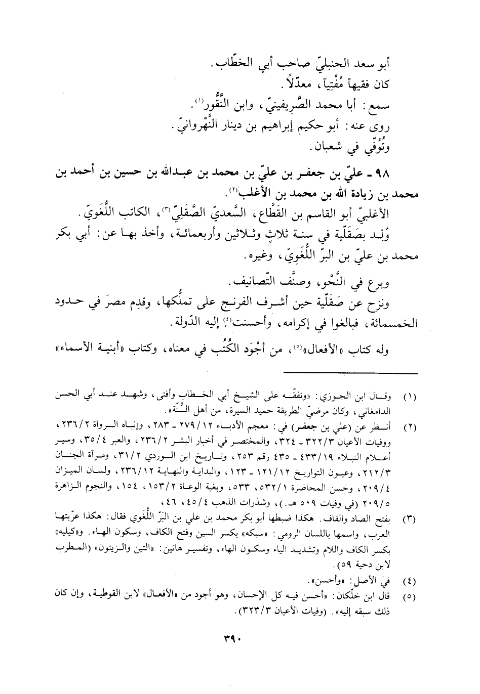 [5] قال ابن خلّكان: «أحسن فيه كل الإحسان، وهو أجود من «الأفعال» لابن القوطية، وإن كان ذلك سبقه إليه» . (وفيات الأعيان 3/ 323) .