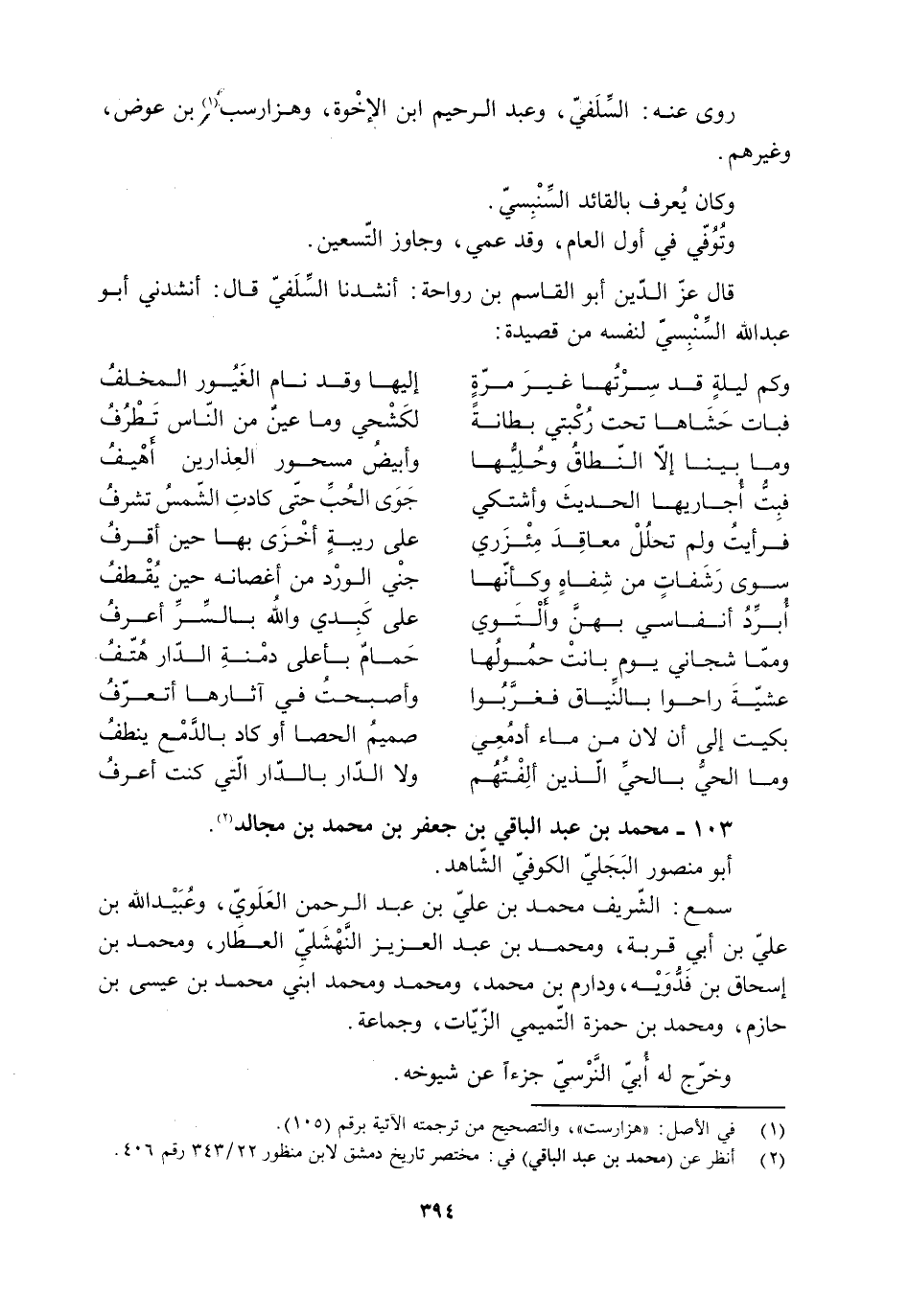 [2] انظر عن (محمد بن عبد الباقي) في: مختصر تاريخ دمشق لابن منظور 22/ 343 رقم 406.