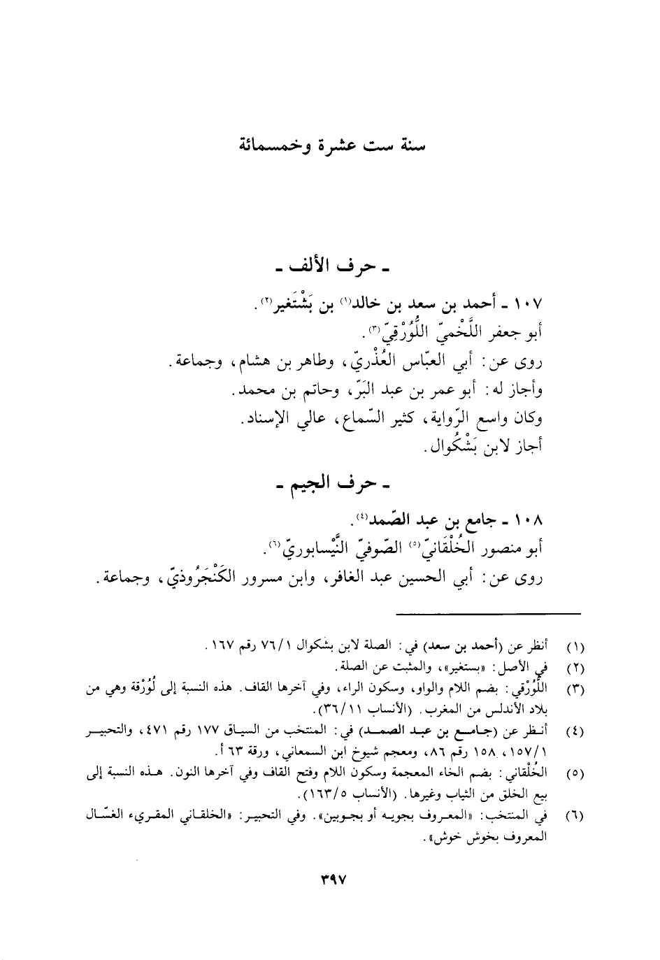 [4] انظر عن (جامع بن عبد الصمد) في: المنتخب من السياق 177 رقم 471، والتحبير 1/ 157، 158 رقم 86، ومعجم شيوخ ابن السمعاني، ورقة 63 أ.