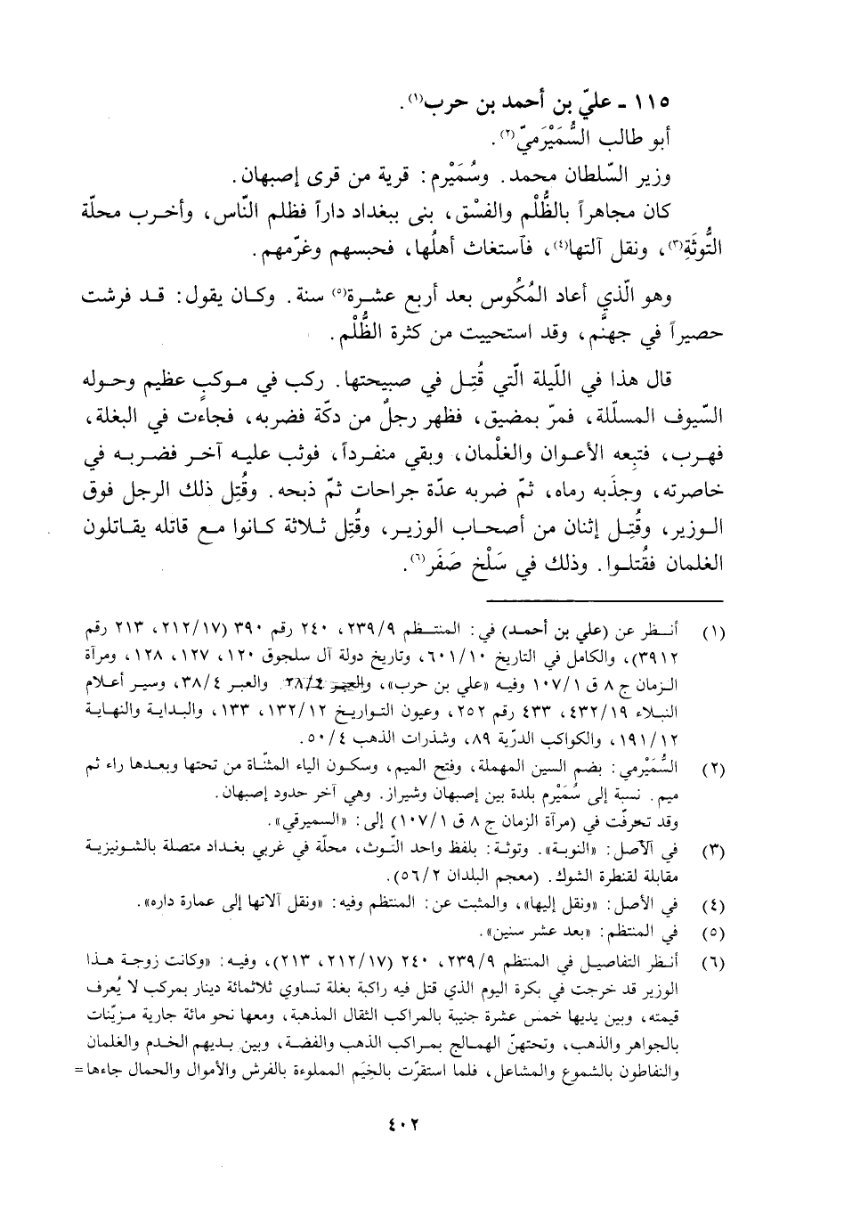 [1] انظر عن (علي بن أحمد) في: المنتظم 9/ 239، 240 رقم 390 (17/ 212، 213 رقم 3912) ، والكامل في التاريخ 10/ 601، وتاريخ دولة آل سلجوق 120، 127، 128، ومرآة الزمان ج 8 ق 1/ 107، وفيه «علي بن حرب» ، والعبر 4/ 28، والعبر 4/ 38، وسير أعلام النبلاء 19/ 432، 433 رقم 252، وعيون التواريخ 12/ 132، 133، والبداية والنهاية 12/ 191، والكواكب الدرّية 89، وشذرات الذهب 4/ 50.