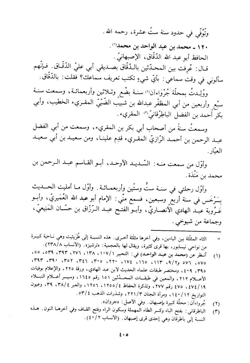[3] الباطرقاني: بفتح الباء وكسر الطاء المهملة وسكون الراء وفتح القاف وفي آخرها النون. هذه النسبة إلى باطرقان وهي إحدى قرى أصبهان. (الأنساب 2/ 40) .